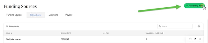 After creating billing items, you can assign them when setting up funding source rates so that trips will calculate the correct charges automatically based on funding source and service type.
