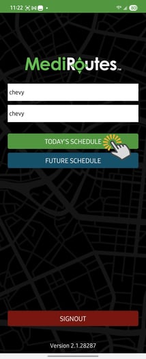 - Open the MediRoutes Mobile App