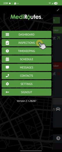Drivers use the Inspections feature in the MediRoutes Mobile App to complete required vehicle or safety inspections.