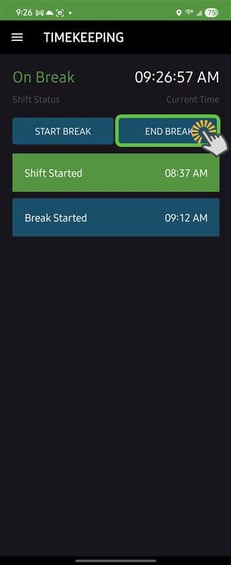 Your break start time will be recorded at the moment you tap the button.