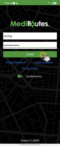 - Open the MediRoutes Mobile App