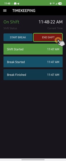 Your shift end time will be recorded.