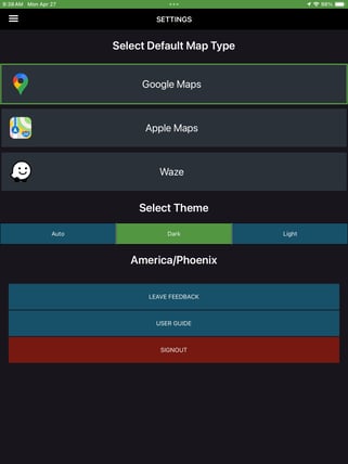 On iOS devices, the default mapping app can be selected directly within the MediRoutes Mobile App.