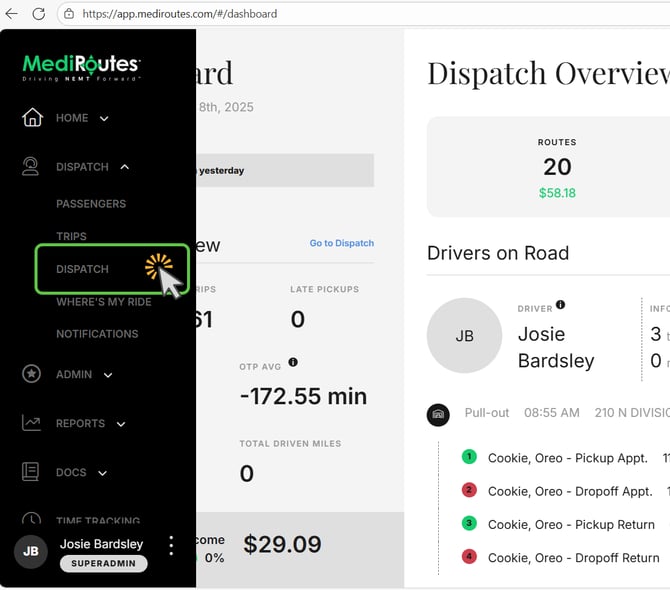 A - Navigate to the Dispatch Screen