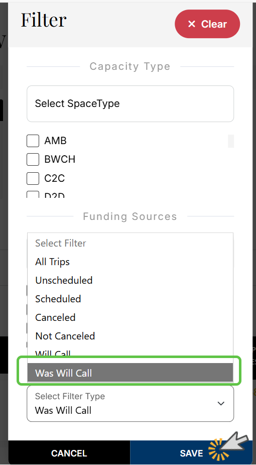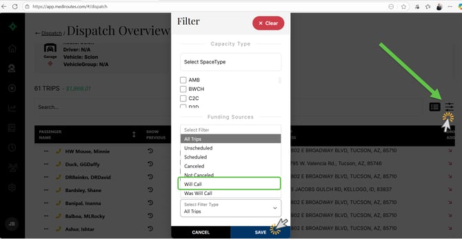 Step 1 - Locate Will Call Trips