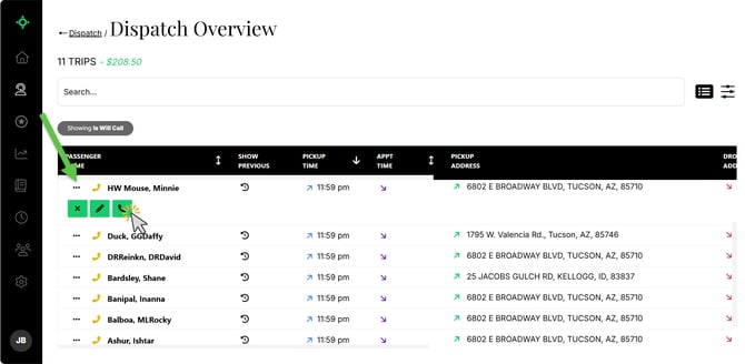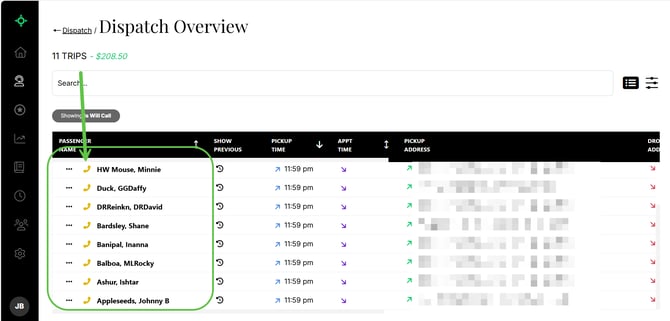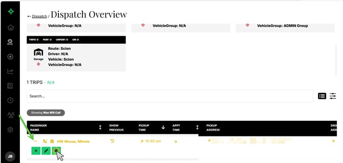 To access Trip Options, click the three dots located to the left of the passenger’s name.