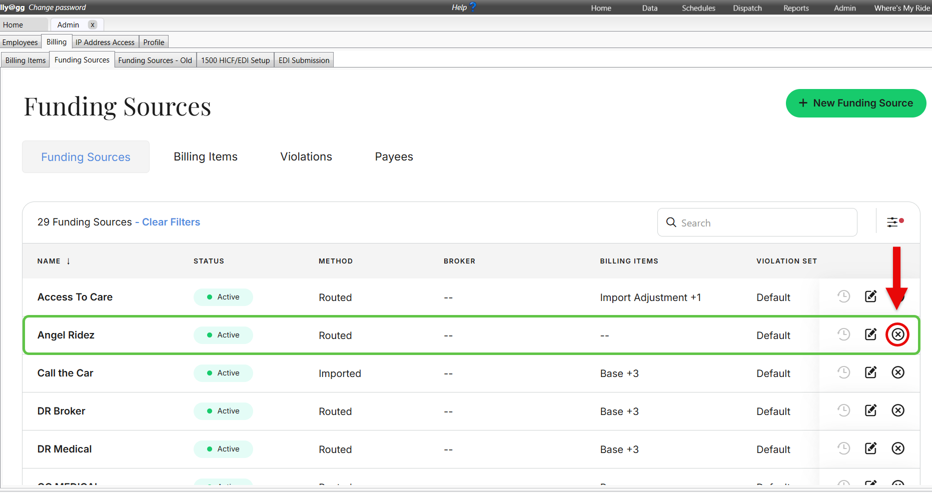 The Funding Source will now be inactive, but other members of your company will need to close out of their MediRoutes Desktop and reopen it in order to see the change. If anyone needs to view the funding source after it is made inactive, they will need to filter the funding source list to show inactive funding sources.