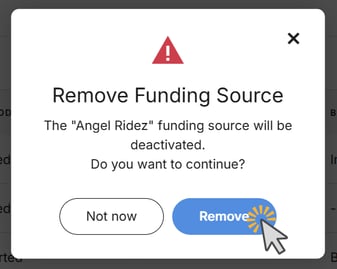 In the pop-up window, click Remove to confirm that the funding source will be deactivated.