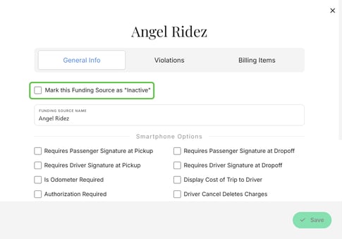 Making a Funding Source Inactive
