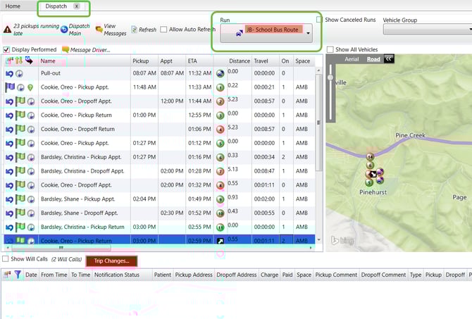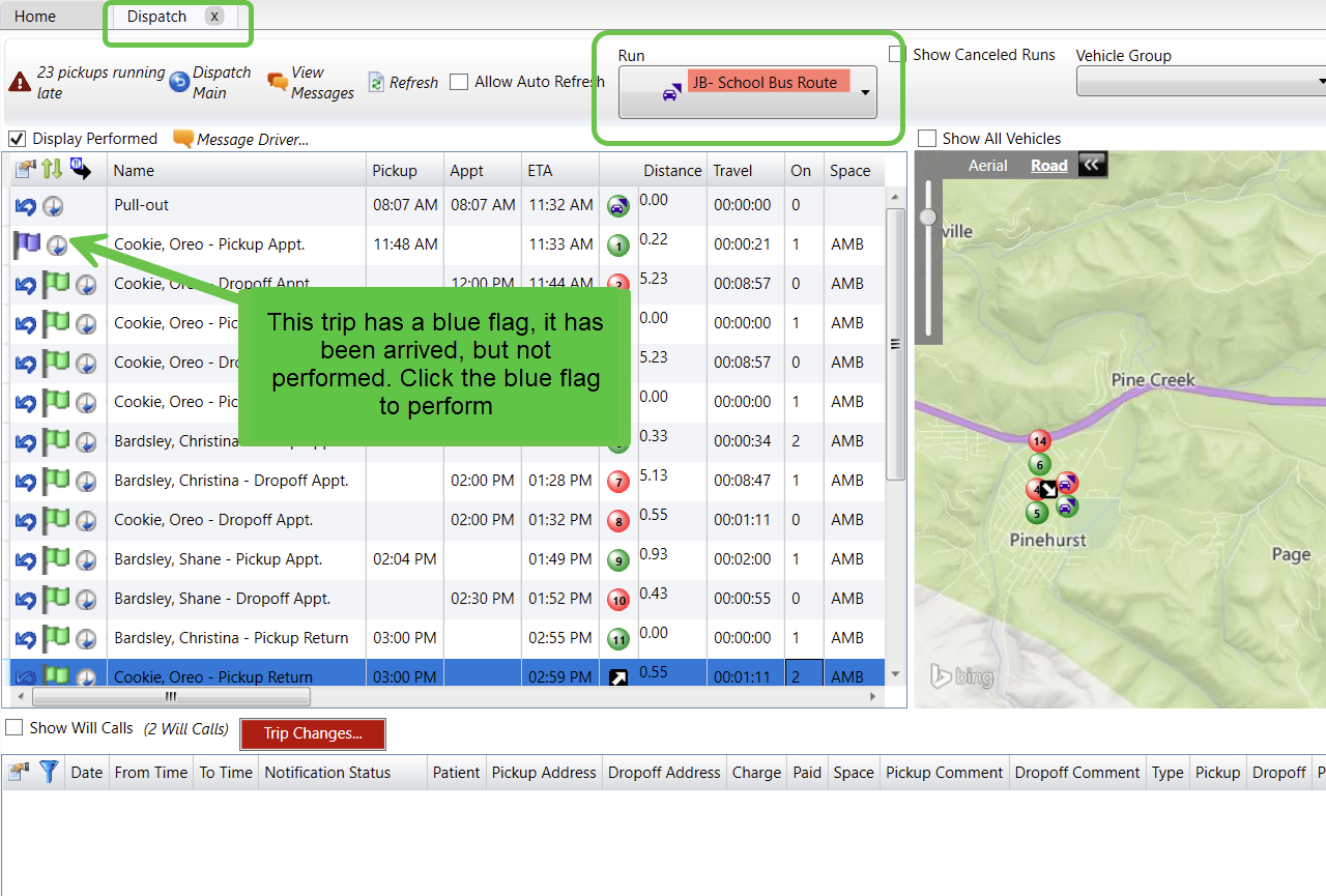 Navigate to the Dispatch tab to locate the trip that was marked performed by mistake. You will be able to see this in the RUN View.