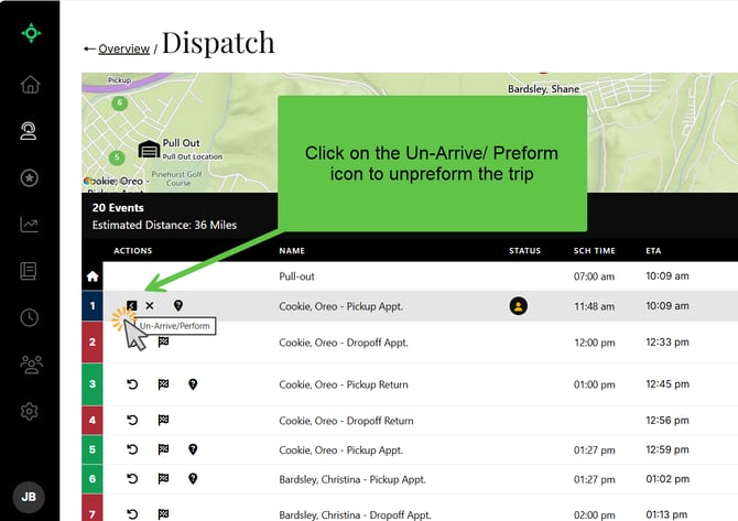 Once the trip is fully completed, you will see an option labeled Un-Arrive/Perform Trip.