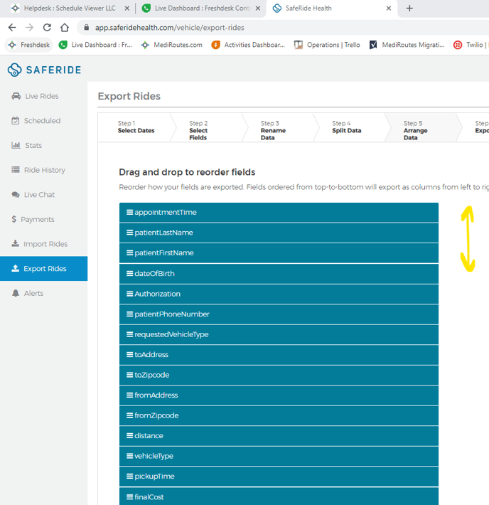 MediRoutes has no access to the Safe Ride portal and can only provide limited information on the Export Rides setup. If you have any questions on this setup, please contact SafeRide.