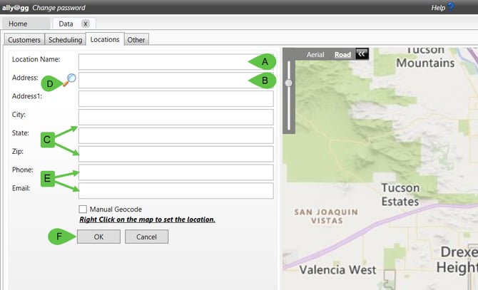 If the Address Search/Magnifying Glass button does not map the address to the correct location, you can use the Manual Geocode option to Right-Click on the map wherever the address is located.