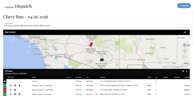 The Dispatch Run View allows dispatchers to quickly make updates and ensure trips are completed efficiently throughout the day.