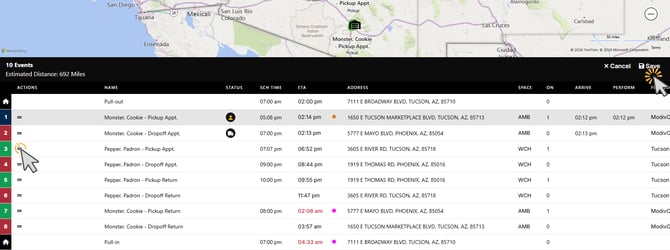 The Dispatch Run View in MediRoutes Online provides dispatchers with a centralized view of a driver’s run, including scheduled trips, route order, and real-time trip activity.