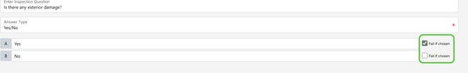Yes/No questions will have an additional option-Fail if chosen. Selecting this marks the inspection as failed on the inspection report if that option is chosen by the driver completing it.