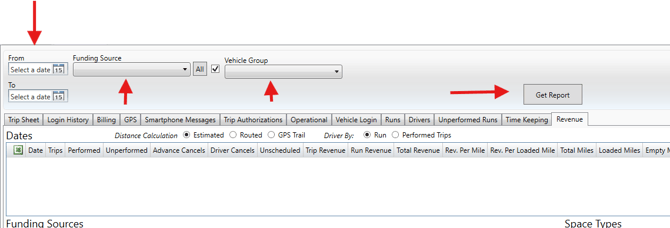 - Funding Source: Optional area to restrict to only certain trips under those Funding Sources you pick in drop down menu, or leave it blank, and ALL Funding Source will be chosen.