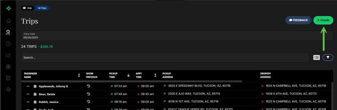 Tip: If the passenger you need to create a trip for does not already exist in your MediRoutes, click the link below to learn how to create the passenger in MediRoutes Online.