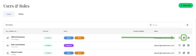 - Click the pencil (Edit) icon for the user