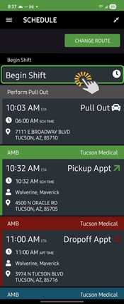 - The Begin Shift and End Shift events will appear on the mobile schedule