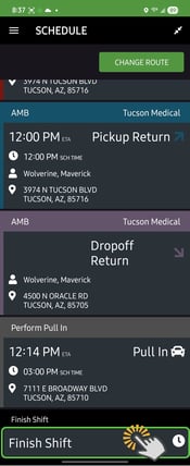 Drivers use the MediRoutes Mobile App to: