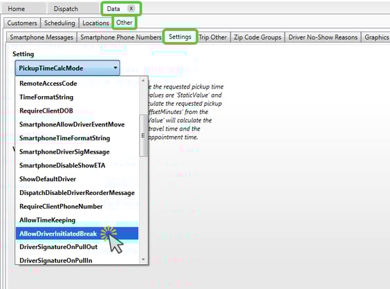 - Locate AllowDriverInitiatedBreak