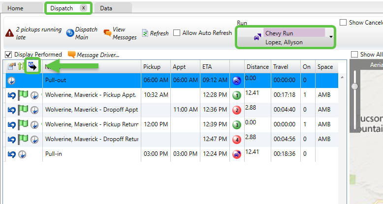 - Navigate to the Schedules (future) or Dispatch (same day) tab