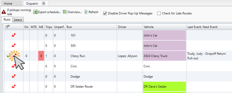 It is recommended to schedule the trip to a run that is already completed for the day to avoid confusion for drivers.