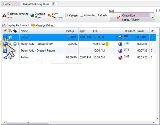 - Find the trip in the run schedule