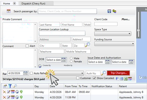 - Use the Dispatch/Home tab for all same-day changes